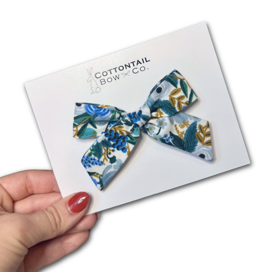 All bows are hand made. Measurements and fabric placement may slightly vary. Each bow is made of premium cotton fabric, hand cut, pressed, sewn, and styled just for you.