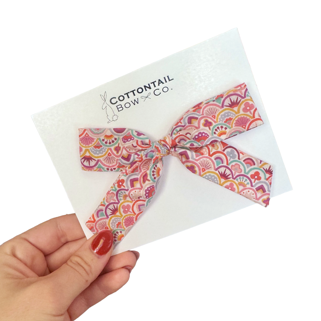 All bows are hand made to order. Measurements and fabric placement may slightly vary. Each bow is made of premium cotton fabric, hand cut, pressed, sewn, and styled just for you.